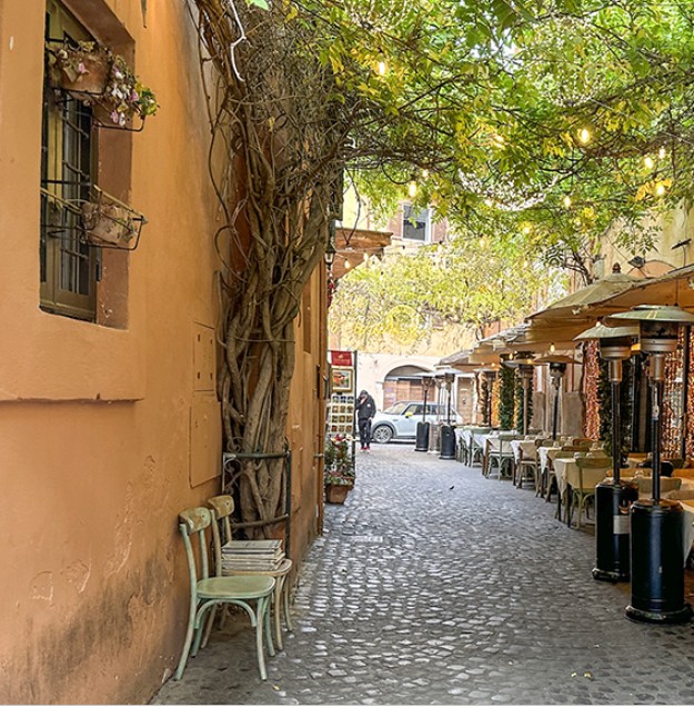 로마에서 가장 매력적인 지역 중 하나가 트라스테베레(Trastevere)입니다. 이곳은 붉은 벽돌 건물과 구불구불한 골목길, 벽을 따라 자라는 담쟁이넝쿨이 어우러져 한 폭의 그림 같은 분위기를 자아냅니다.
